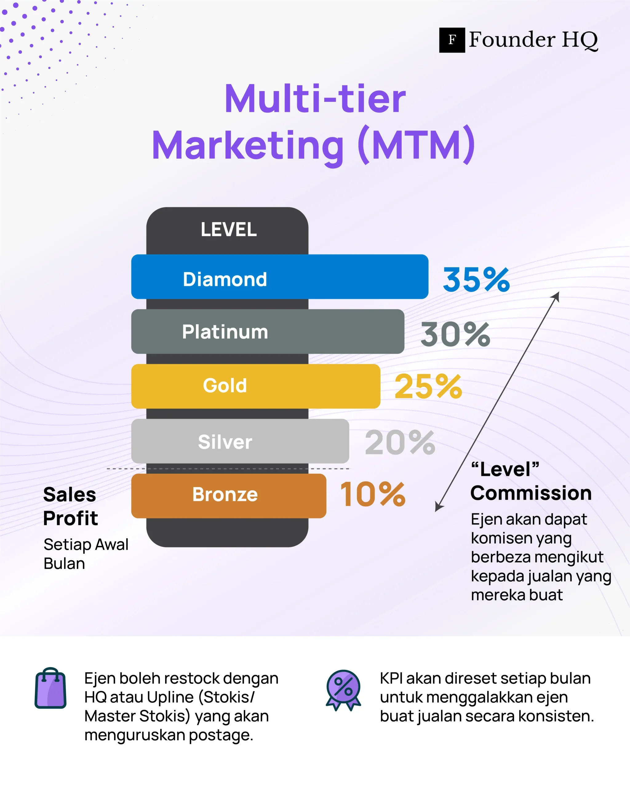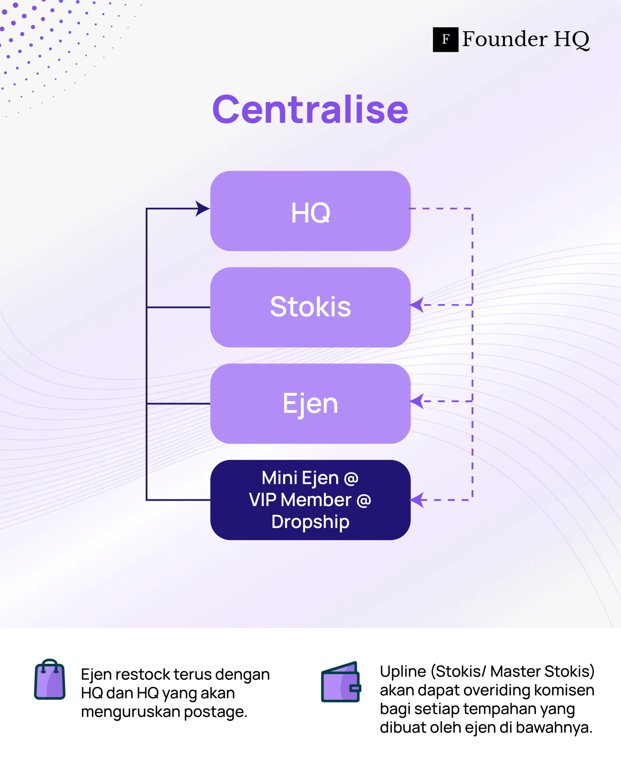 Untuk HQ yang ada team sale kecil / marketer, dan nak bina 1 level ejen luar.
