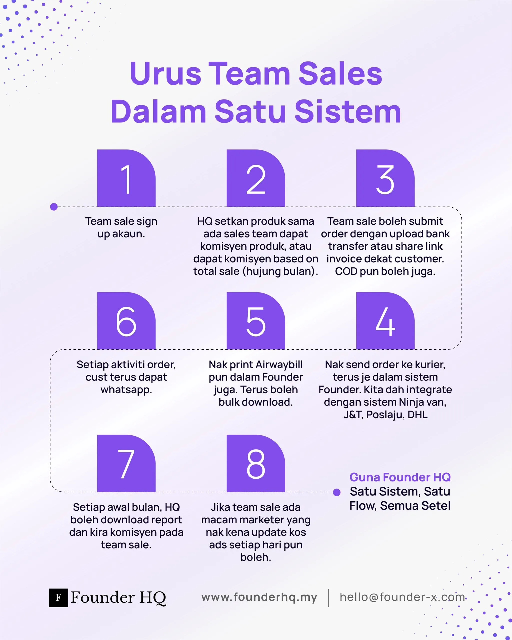 Level tertinggi anda boleh uruskan order dari team sale mereka sendiri terus dalam Founder HQ